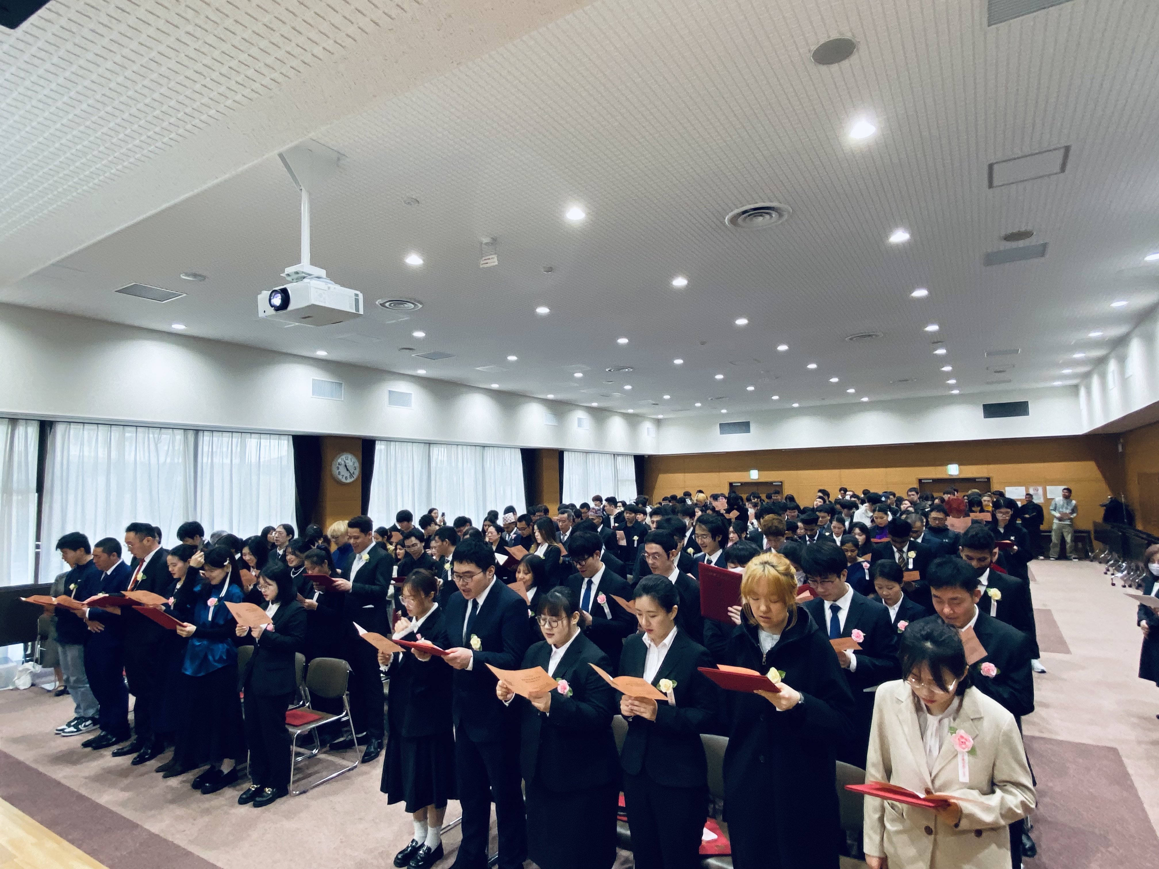 卒業生代表のスピーチでは、在学中の思い出や仲間との絆、そして支えてくれた先生方への深い感謝が語られました。未来への力強い決意が述べられると、会場は温かな拍手に包まれ、胸が熱くなるひとときとなりました。